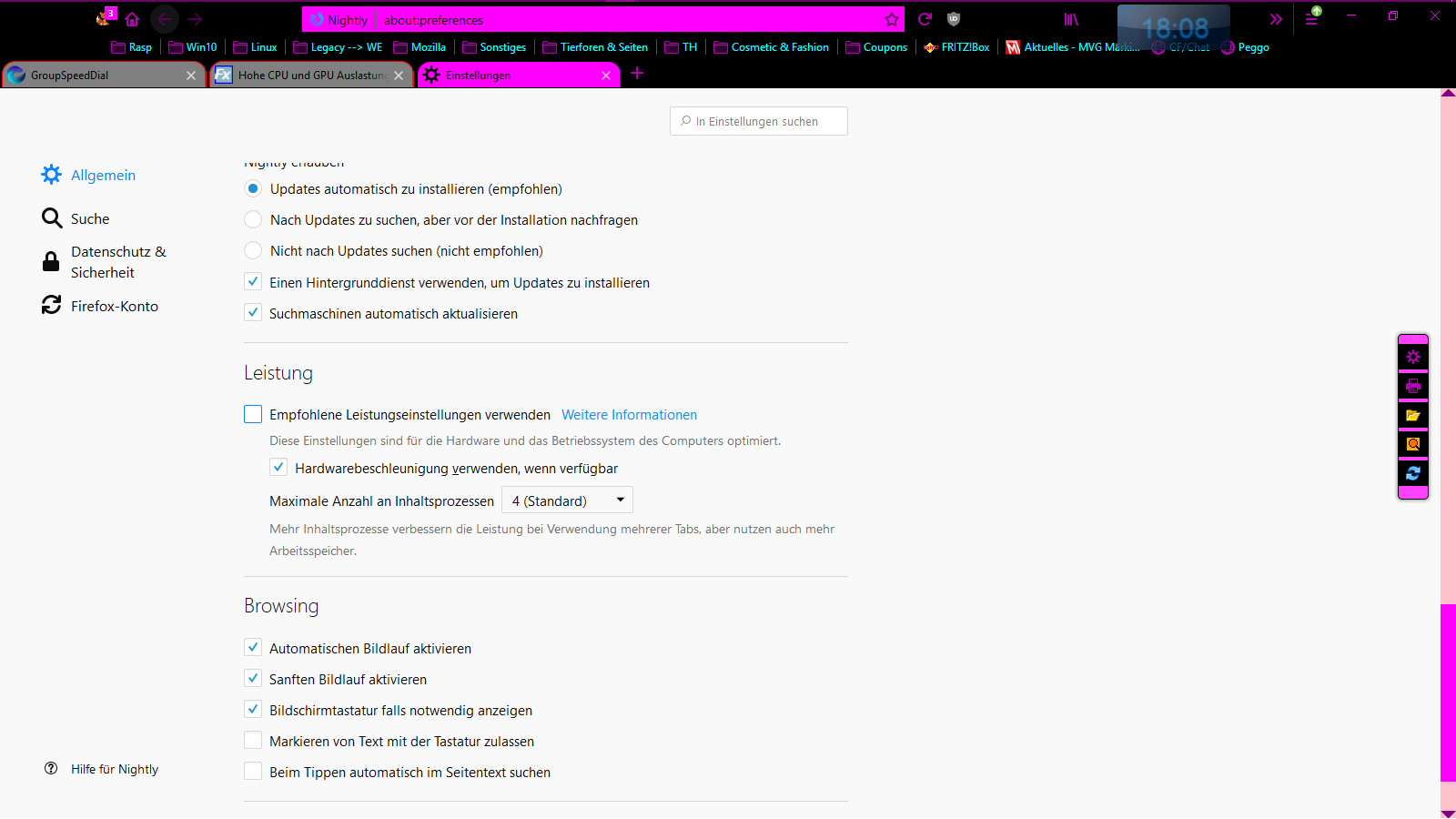 Hast du die Möglichkeit, deinen Firefox an einem anderen Rechner zu testen? Du könntest dir eine portable Version mit deinem Firefox-Profil erstellen.