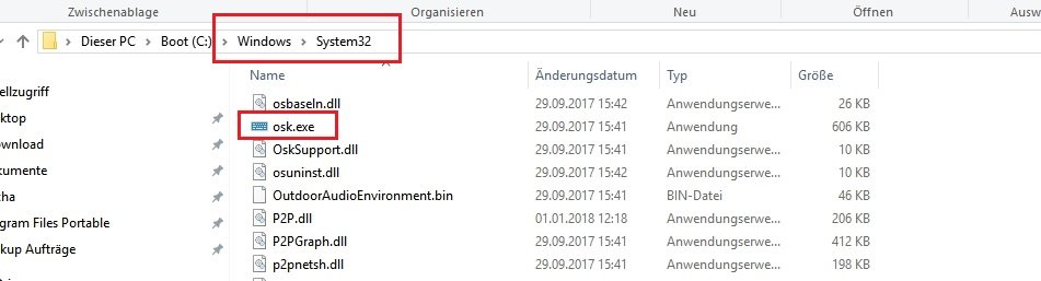 • Schaue bitte mal im Explorer nach ob es die osk.exe überhaupt gibt
