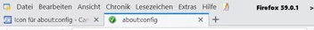 Meine Icons in der Tableiste haben eine feste Breite, man sieht jetzt also deutlich die Lücke von about:config, das war früher schöner.