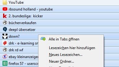 mir fällt auf, daß sich Lesezeichen aus der Lesezeichenverwaltung nicht "en bloc" per Drag&Drop kopieren lassen, sondern nur einzeln. Ist es ein FF- oder ein Win10(32)- Problem?