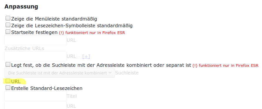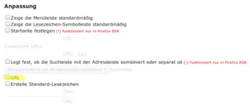 - Die Erweiterung kann bereits Einstellungen, welche nur in Firefox ESR funktionieren, entsprechend markieren.