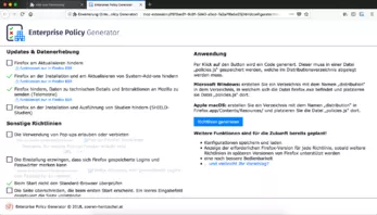- Wie im ersten Screenshot zu sehen, sind erst sechs Policies implementiert, Firefox unterstützt bereits sehr viele mehr. Die kommen alle noch.