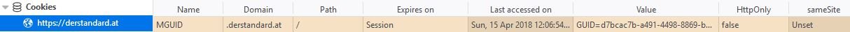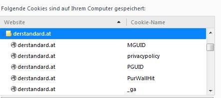 - Zur Sicherheit habe ich die URLs die mit derstandard.at in Verbindung stehen sowohl für Datensammlung wie auch Banner und Cookies erlaubt.