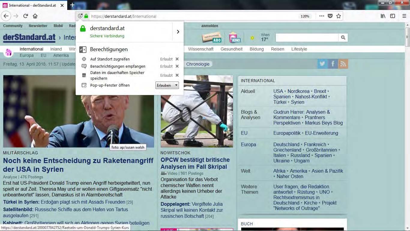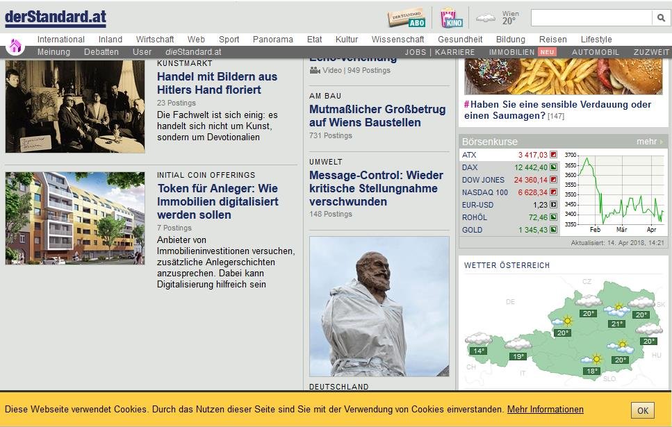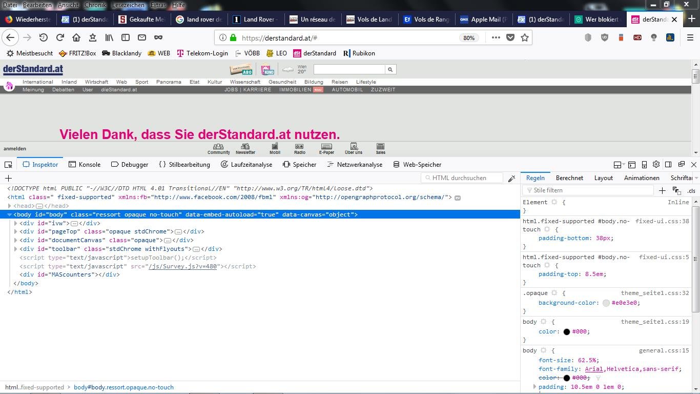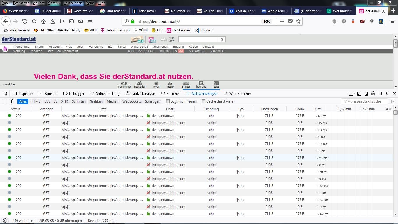 Trotzdem bekomme ich beim Aufruf der Seite https://derstandard.at/ die Meldung „Wahrscheinlich haben Sie einen Ad-Blocker installiert“