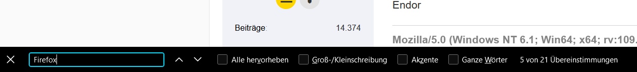 Wenn ich STRG+F drücke und nach einem Wort suche, kann ich mit der Enter-Taste oder Pfeilbuttons direkt zu den gefundenen Textstellen zu springen, wenn das Wort mehrmals auf der Seite steht. Durch die Firefox-Einstellungen kann man die Suche bereits beim Eintippen starten lassen. Dann kommt man aber mit Enter nicht weiter und Pfeiltasten gibt es auch nicht.