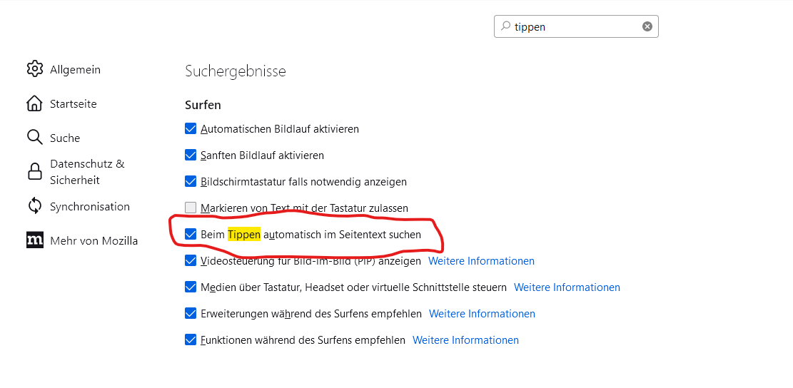 Mit dem Script und angehakter Einstellung, klappt beim Tippen die klassische Suchzeile auf, und nicht so mager.