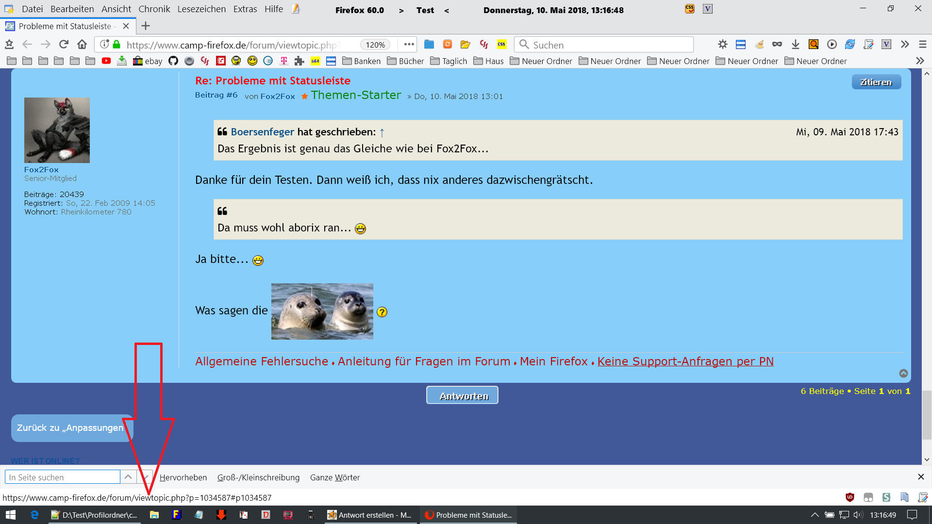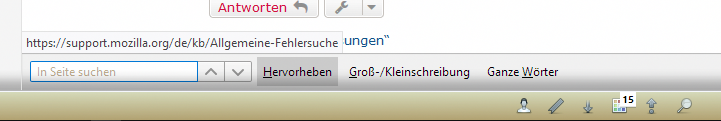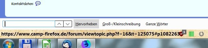 Wenn ich das Suchfeld per F3-Taste öffne, die Linkanzeige noch vorhanden ist, überlappt sich beides, denn dann befindet sich der angezeigte Link in der Suchleiste und nicht mehr in der Statusleiste.