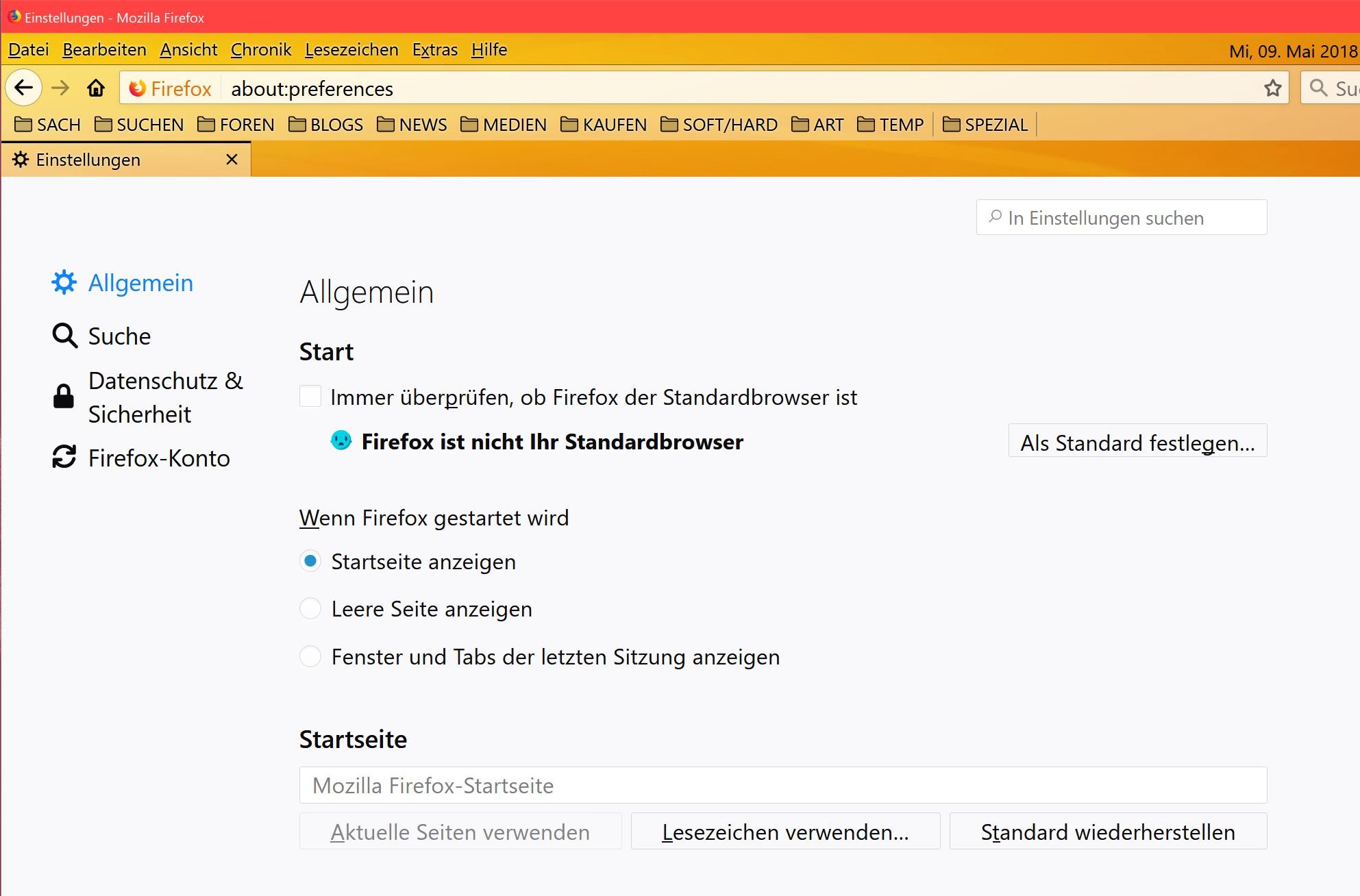 Startet man FF 60 neu steht in der Adresszeile z.B. nichts. Erst wenn ich den Start-Tab mit dem X schließe und dann ein neuer erscheint, steht auch dann "about:blank" in der Adresszeile.