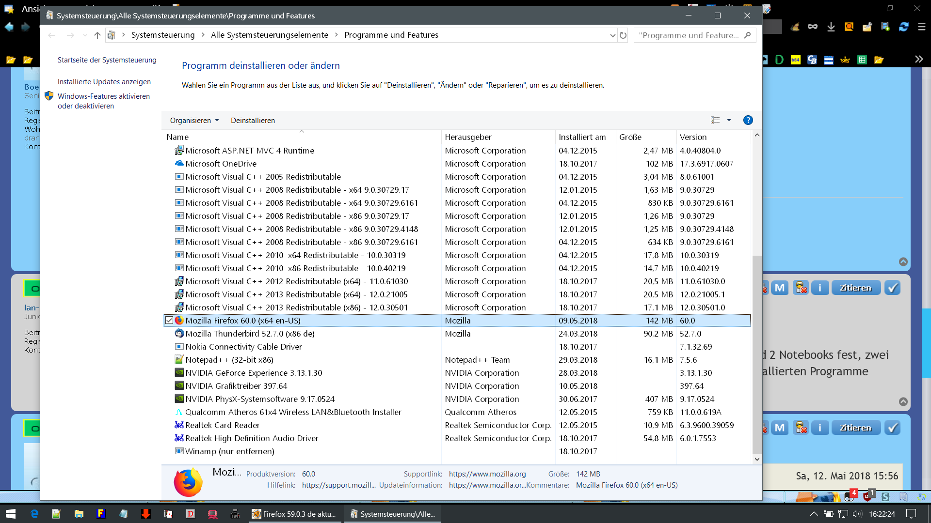 seit Wochen beobachte ich auf vielen Windows 10-Rechnern (meistens Pro x64), dass das Firefox-Update (als Admin durchgeführt) eine en-US-Version installiert. Erscheinungsbild, Menüs und Dialoge bleiben allerdings deutsch.