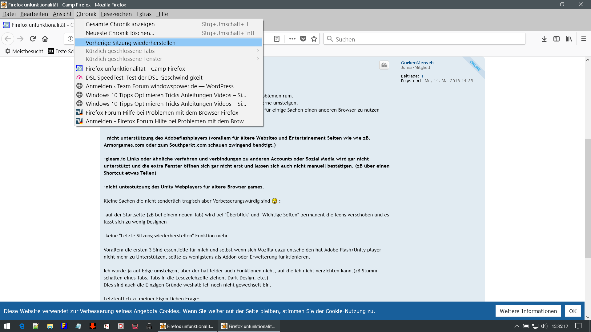 -keine "Letzte Sitzung wiederherstellen" Funktion mehr