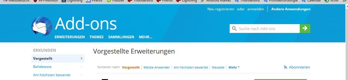 TB aktualisierte Erweiterungen: https://addons.mozilla.org/de/thunderbird…ss?sort=updated.