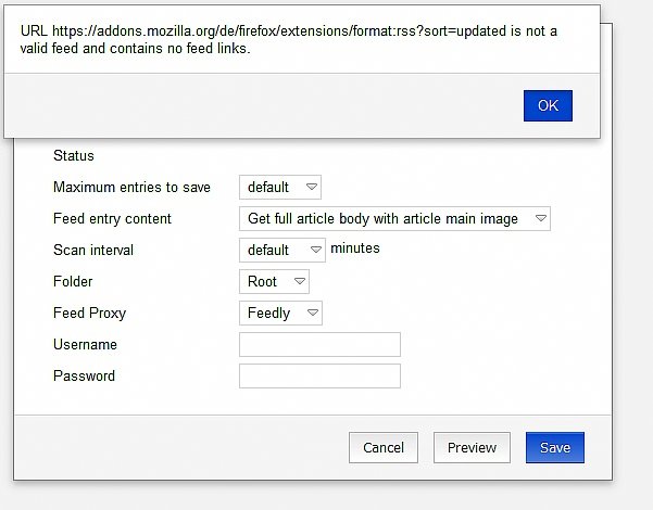 Seit ein paar Tagen funktionieren hier (Win 8.1, Firefox 64bit (60.irgendwas) die Feeds die ich von Mozillas Addon-Seite abonniert habe in Feedbro nicht mehr.