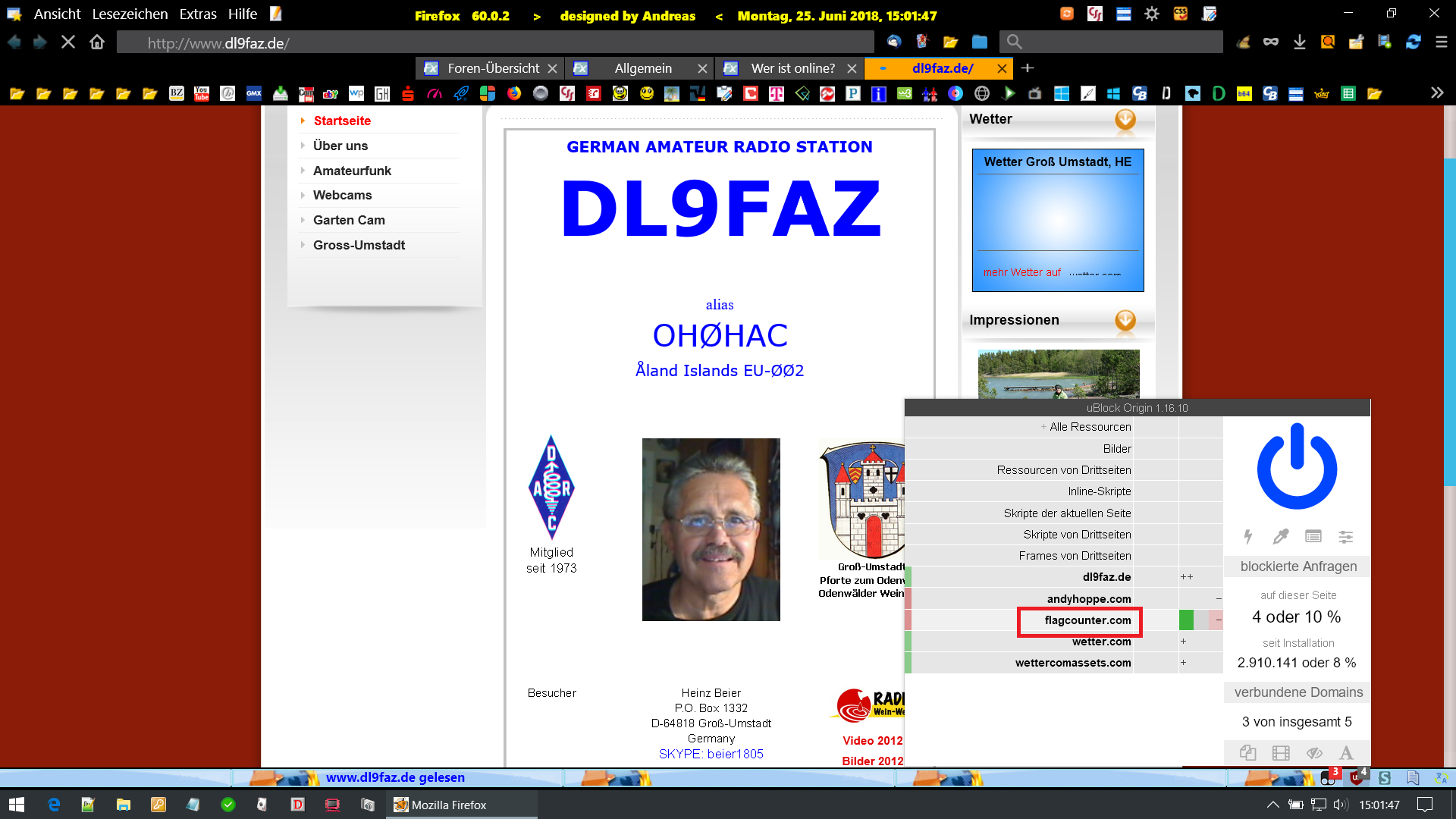 Auf meiner Joomla website ist ein Modul zur Anzeige der Besucher mit Landesflaggen. Hat bis vor einigen Firefox Versionsänderungen funktioniert, jetzt ist es unsichtbar, nur der Modulname ist noch da. Funktioniert in allen anderen Browsern, Chrome, Opera, Explorer, etc. Die website ist http://www.dl9faz.de.