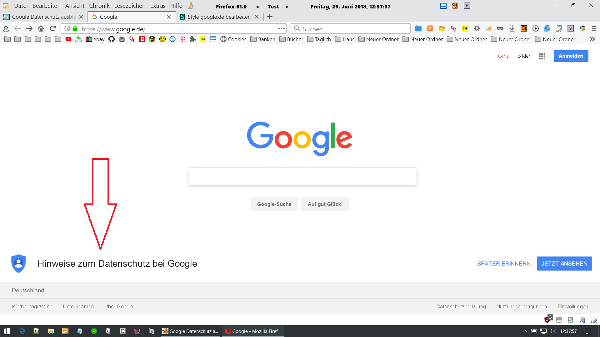 Ich kann aber nur etwas zu der Leiste "Hinweise zum Datenschutz" sagen, das andere gibt es bei mir nicht.