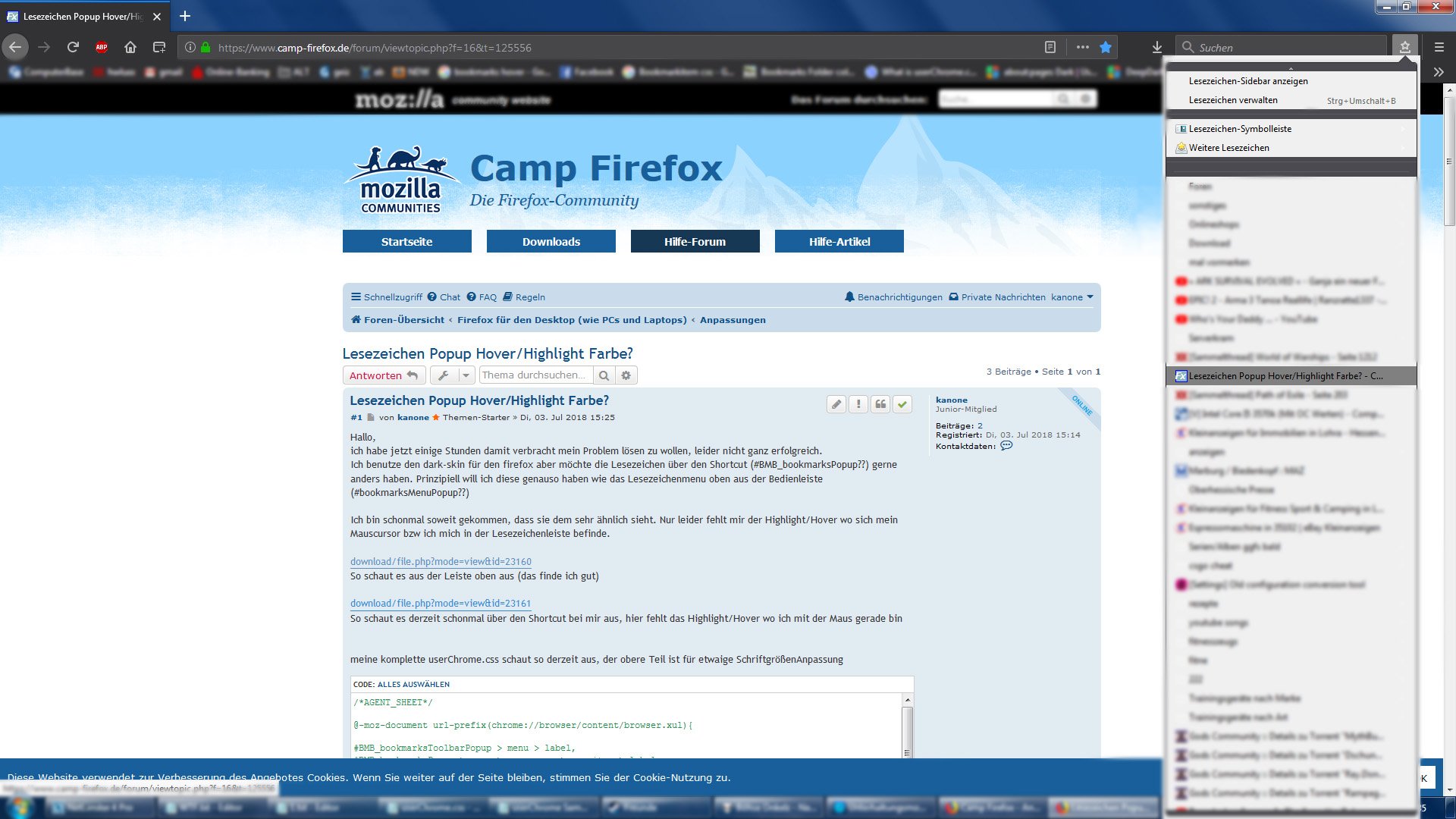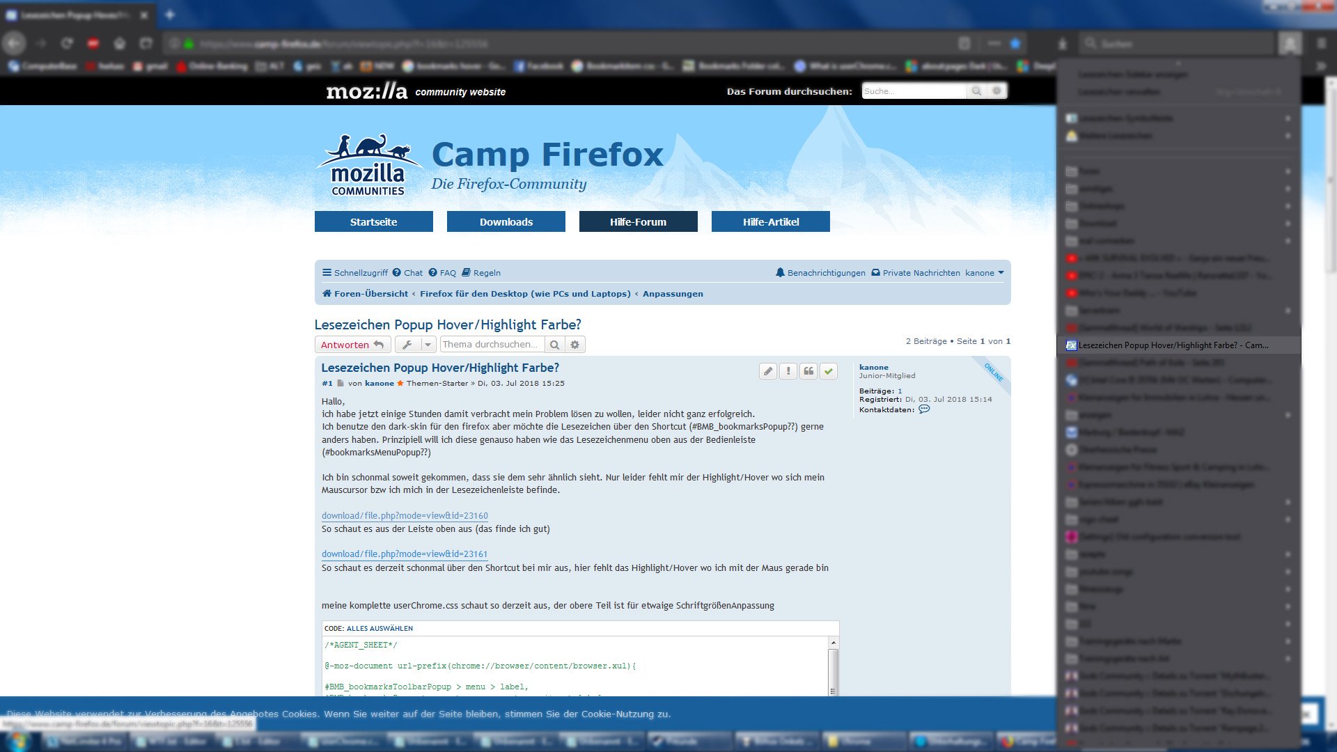 Ich verwende den normalen Dark-mode von Firefox, welchen ich auch nutzen möchte und soweit zufrieden bin, jedoch seit dem letzten Update sind meine Lesezeichen "rechts" auch dunkel :(