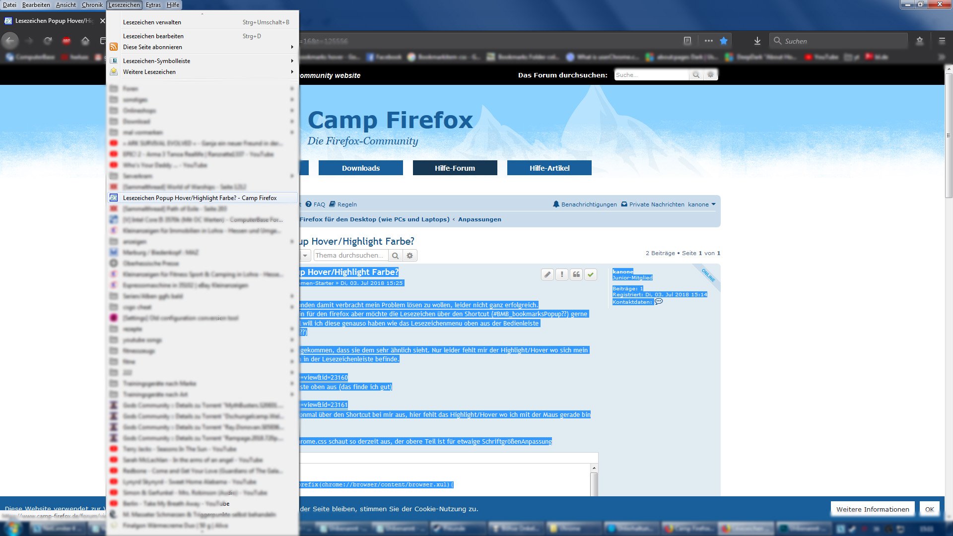 Lesezeichen Popup Hover/Highlight Farbe?