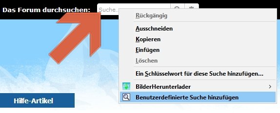 !1.) Rechtsklick ins Suchfeld der jeweiligen Seite und "Benutzerdefinierte Suche hinzufügen" anklicken
