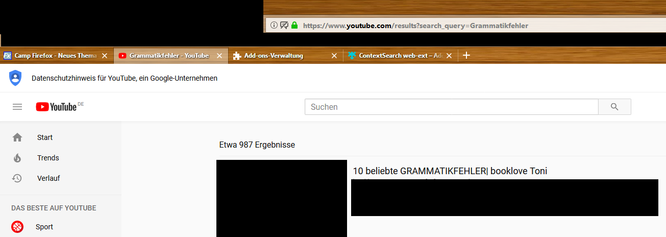 Das ist quasi das, was ich nicht wollte, denn es sollte eigentlich so aussehen, das ich meinen gesuchten Text im Feld "Suchen" auf Youtube dann auch bereits eingetragen sehe.