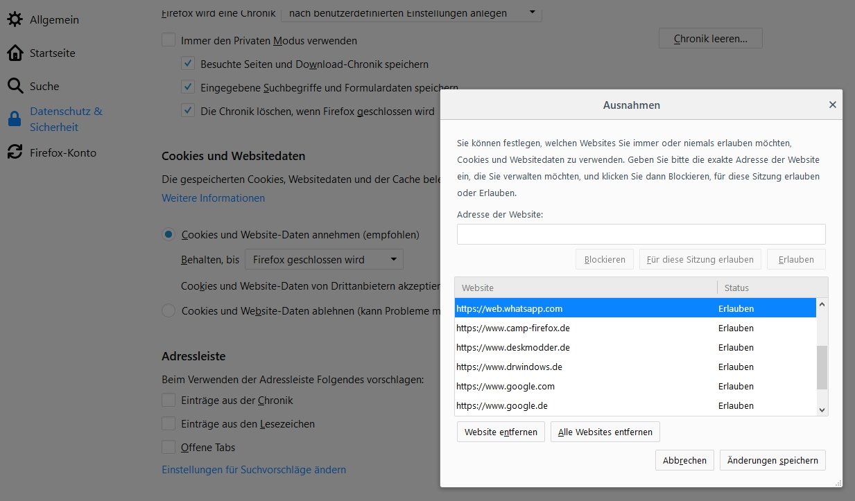 da jemand weiterhelfen.Desweiteren speichert der neue Firefox nicht mein Whatsapp Web.Muss jedesmal wieder den WebCode