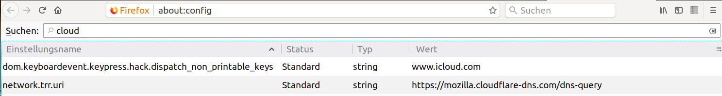 Frage: Was passiert, wenn ich den Eintrag unter network.trr.uri lösche?