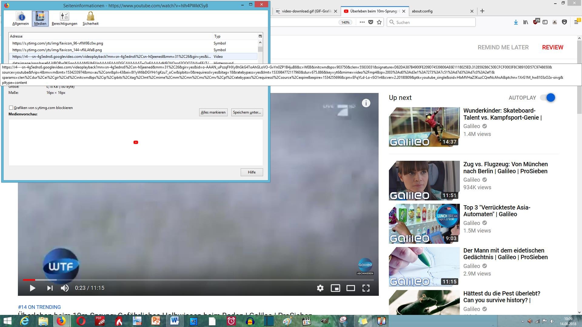 Wenn ich das nicht gemacht hätte: AUSSERHALB des Videos klicken und dann die Video URL aus den Seiteninformationen raus suchen, wäre ich ja gar nicht so weit gekommen. Wie hätte ich denn sonst im Fenster "Seiteninformation" -> Medien im Feld "Adresse" das Problem mit der langen Nicht-mp4-Videoadresse bekommen können? (s. meine erste Grafik)Danke für den Link mit dem Skript.