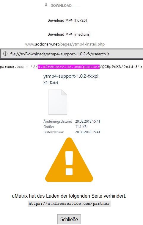 Mein festgestelltes Ergebnis zur Erweiterung YouTube MP4 Downloader wäre sowieso ernüchternd. Beleg als Bildschirmfoto. Was ich empfehlen könnte ist ein userscripts -> http://sebaro.pro/viewtube - die mit der Erweiterung Violentmonkey einwandfrei funktioniert.