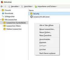 • Du kannst dies auch alles von der Lesezeichen-Symbolleiste aus erledigen mittels Rechtsklick. Das Verschieben dann per normalem Drag & Drop der Lesezeichen. Der Weg über die Lesezeichen-Verwaltung ist nur einer ;)