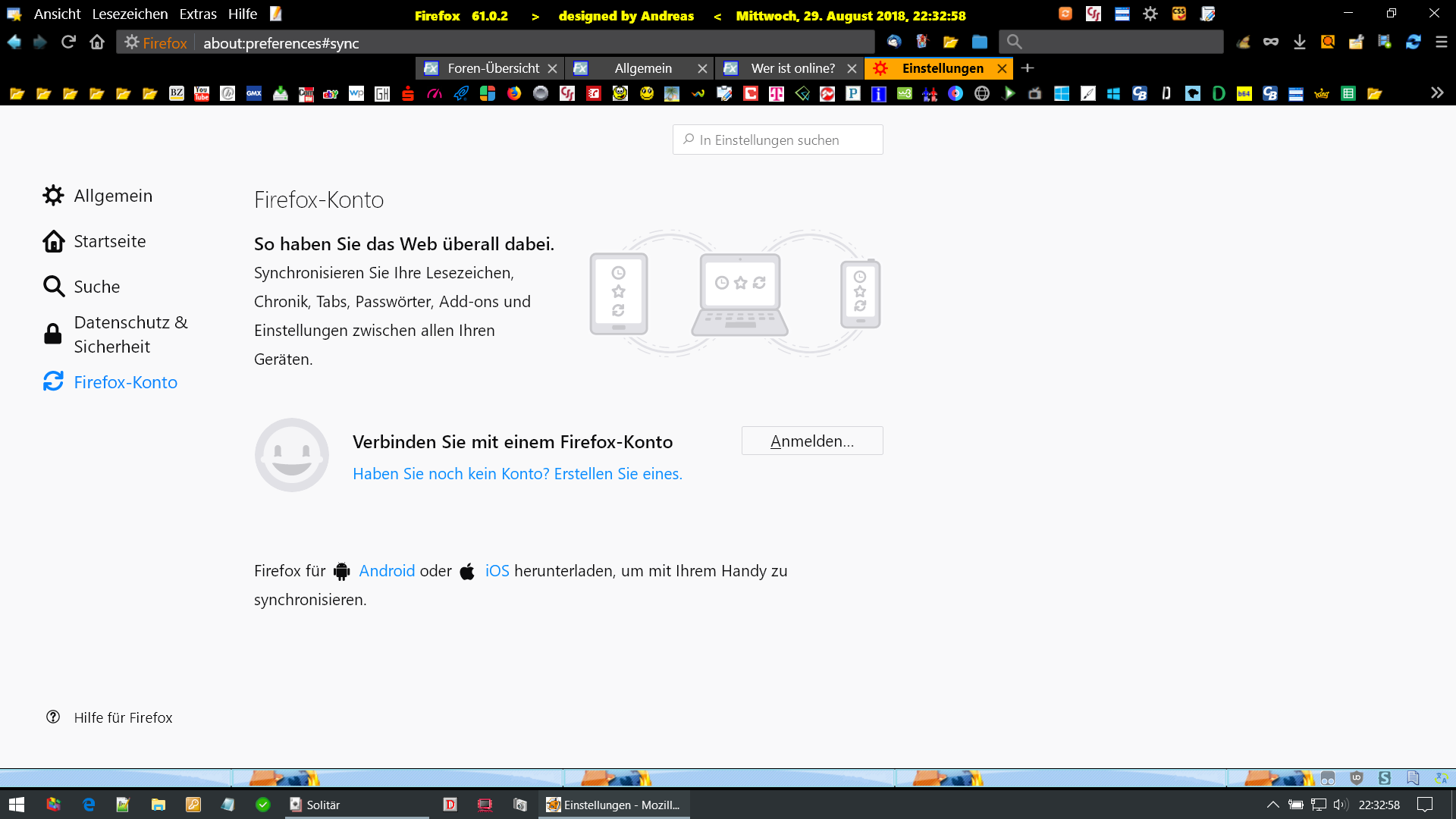 mich bei Firefox angemeldet.