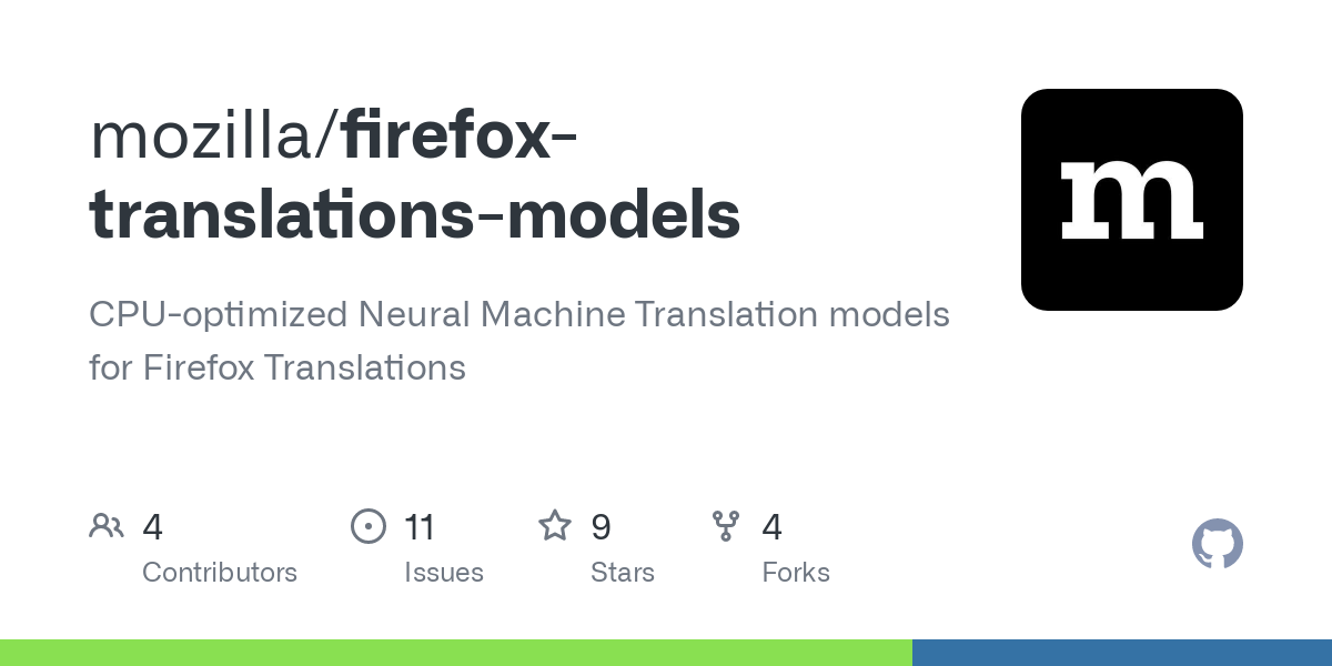 firefox-translations-models/results.md at main · mozilla/firefox-translations-modelsCPU-optimized Neural Machine Translation models for Firefox Translations - firefox-translations-models/results.md at main · mozilla/firefox-translations-modelsgithub.com -