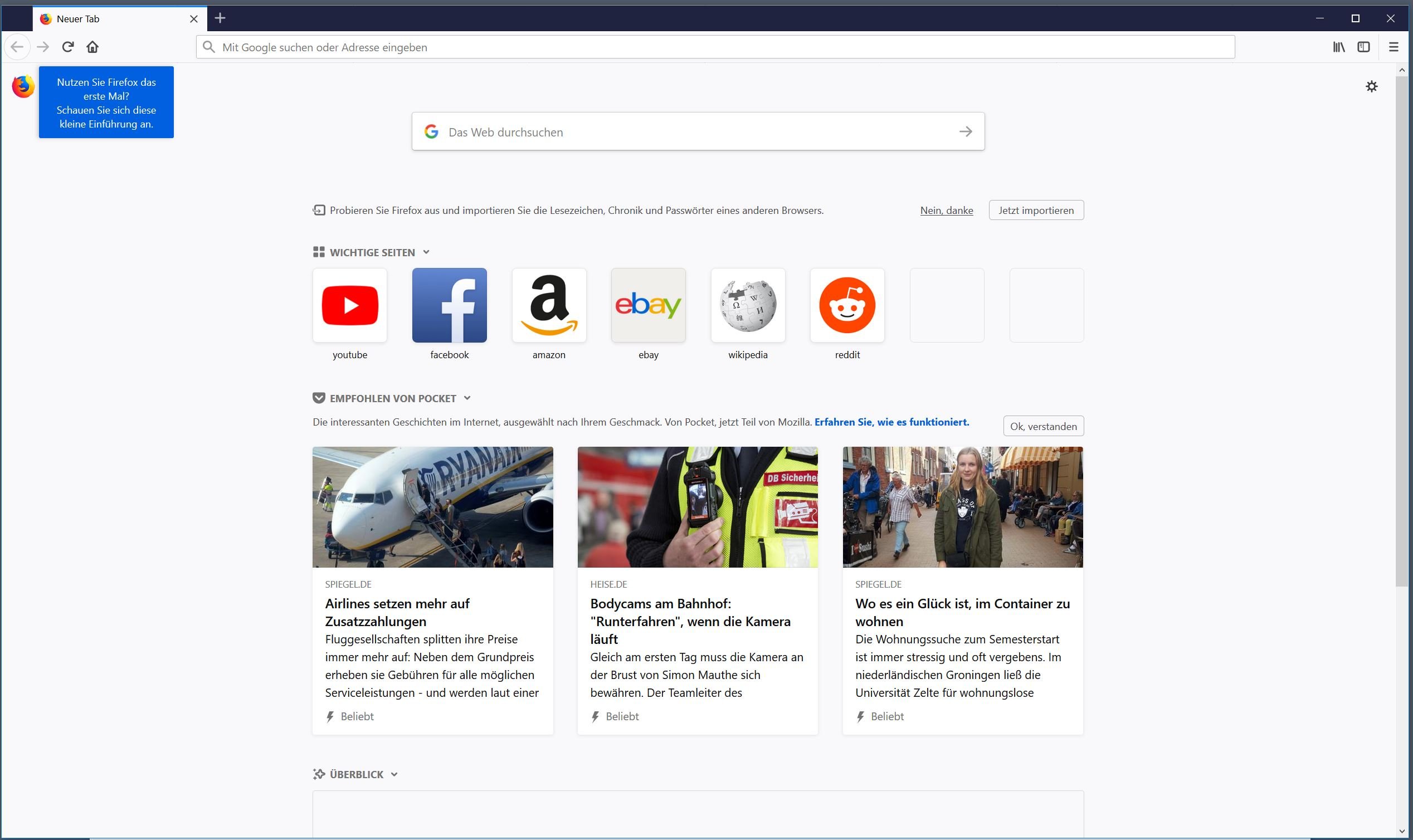 1. Firefox ein mal Blanko ohne Scripte, css.