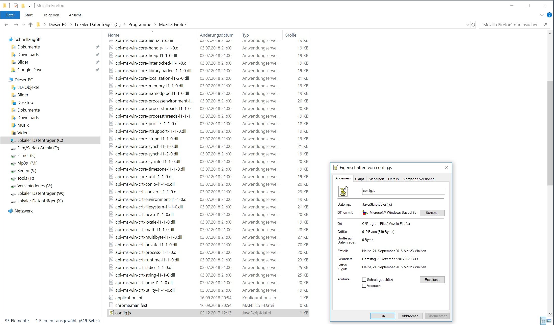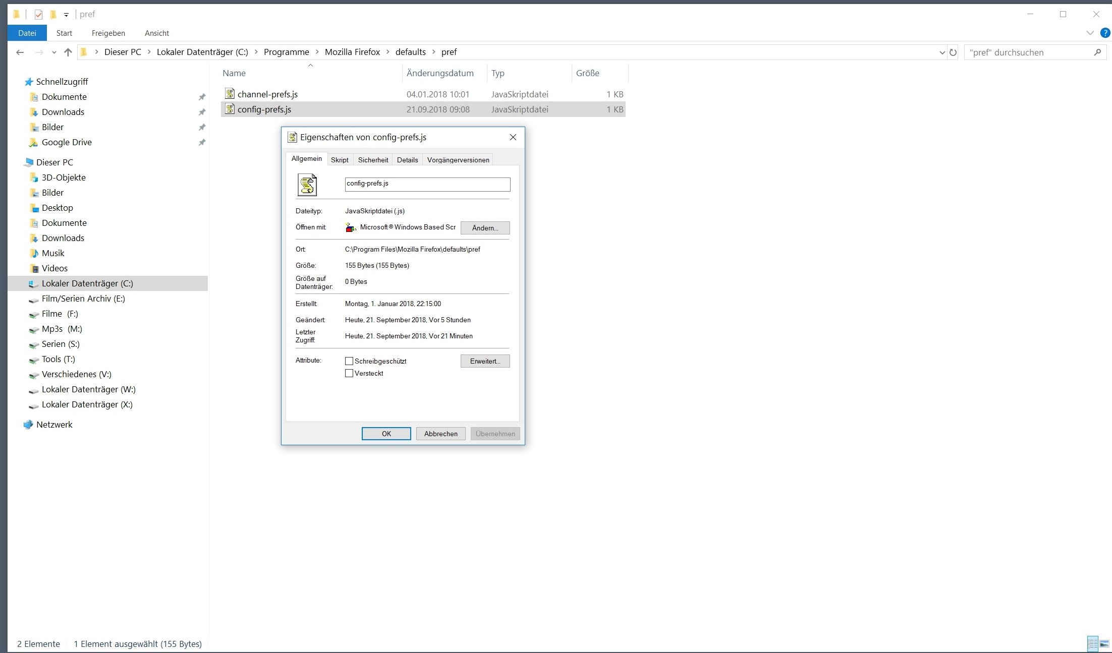 --> Screenshot des Ordners /defaults/pref des Programmordners mit den Eigenschaften der Datei config-pref.js (so wie beispielhaft in meinem angehängtem Bild dargestellt)