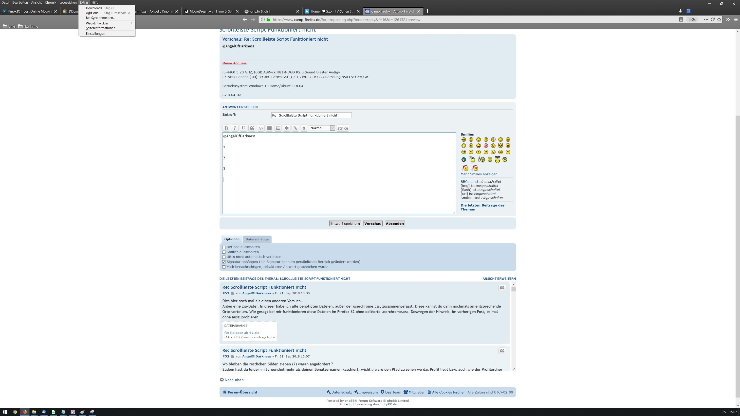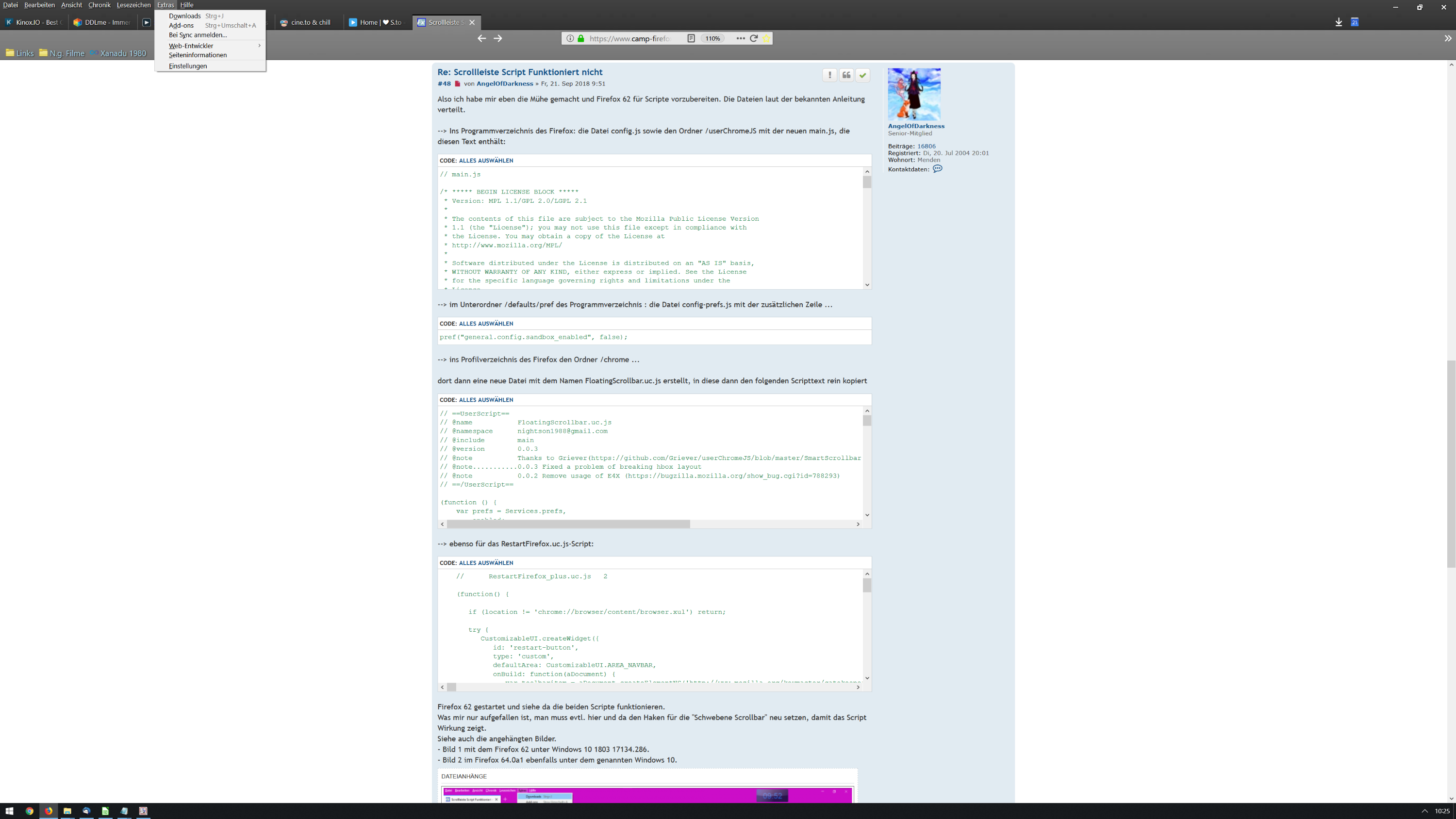 • Also ich habe mir eben die Mühe gemacht und Firefox 62 für Scripte vorzubereiten. Die Dateien laut der bekannten Anleitung verteilt.