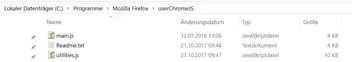 Hast du jetzt den richtigen Inhalt in der Datei userChrome.js? Zeige auch bitte nochmal den Inhalt der Datei main.js.