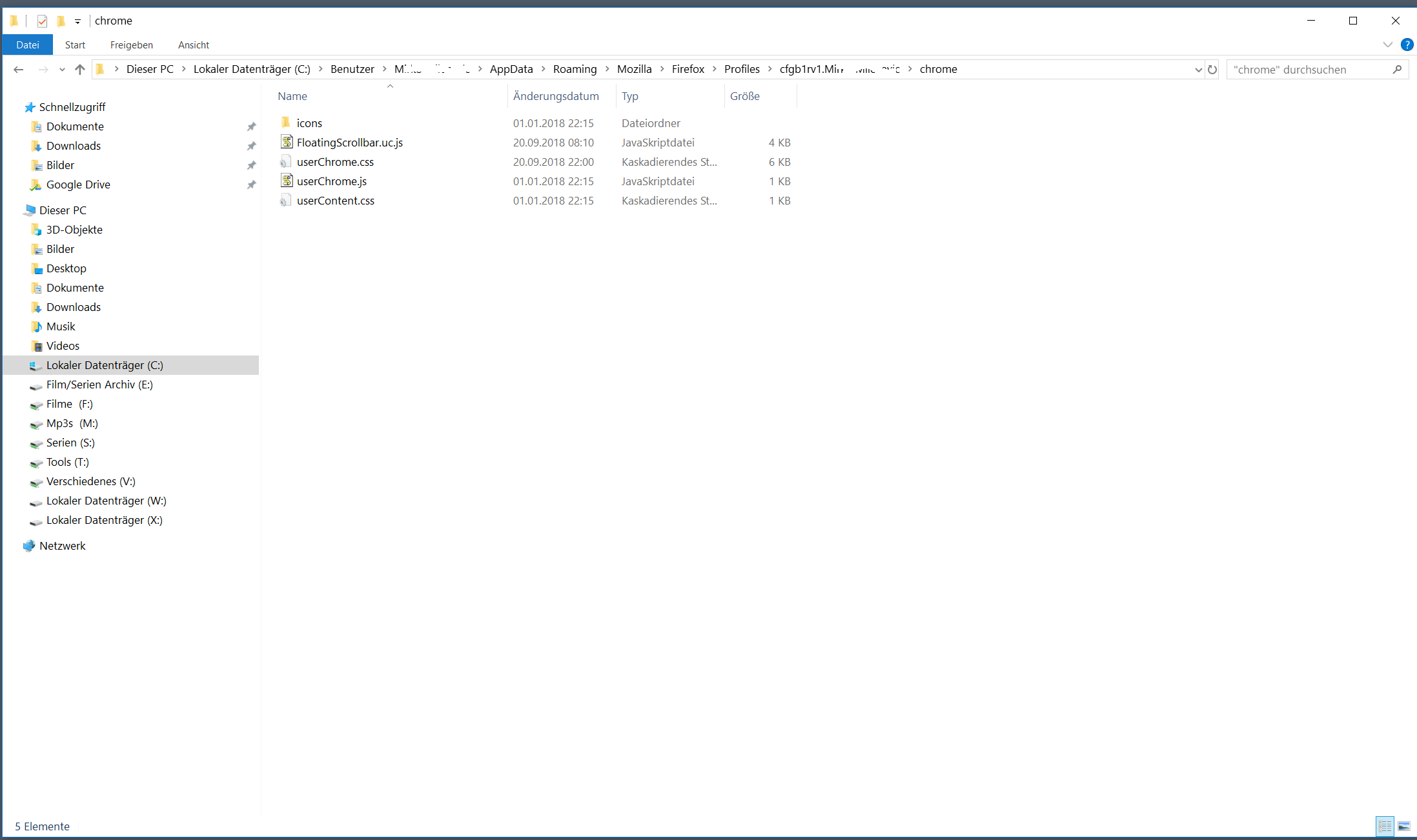 AdminFox: Zeige mal den Inhalt der Datei userChrome.js.