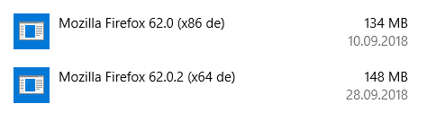 In der Liste der installierten Programme habe ich jetzt übrigens zwei kaputte Installationen ohne Icon, eine x86 Version 62.0 und eine x64 Version 62.0.2.