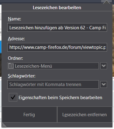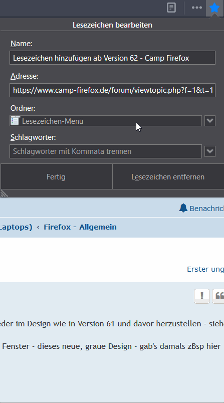 Hallo Leute, gibt's eine Möglichkeit "Lesezeichen hinzufügen" wieder im Design wie in Version 61 und davor herzustellen - siehe Bilder.
