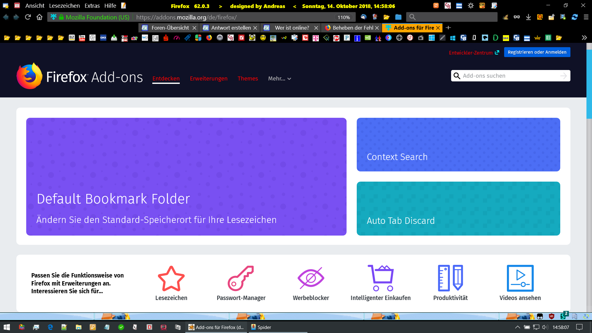 Versuche daher testweise die Zertifikatendatenbank zu löschen, damit diese von Firefox beim Neustart neuangelegt wird, und surfe danach die Add-ons Seite von Mozilla erneut an. (Anleitung weiter unten)
