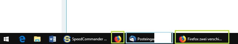Wie dem auch sein, Fehler ist nun lokalisiert und es funzen nun 2 Instanzen. Aber jetzt kommt mein nächstes Problem: Da ich ja die 2 Instanzen als Icons in der Taskleiste haben möchte ist es derzeit aber so, dass diese Verknüpfungen in der Taskleiste 2 Tabs öffnen jedoch zusätzlich zu den Icons (s.Bild). Das ist für mich verwirrend -warum bleibt also das Icon nicht gleich im Tab stehen?