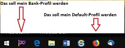 • OK, nach #52 klappt das auch so wie im #53. Danke! Aber nun kann ich keine 2 FF Verknüpfungen in die Taskleiste ziehen -entweder die mit der Bank oder die mit dem Default-Profil. Beide gehen nicht, Oh man...