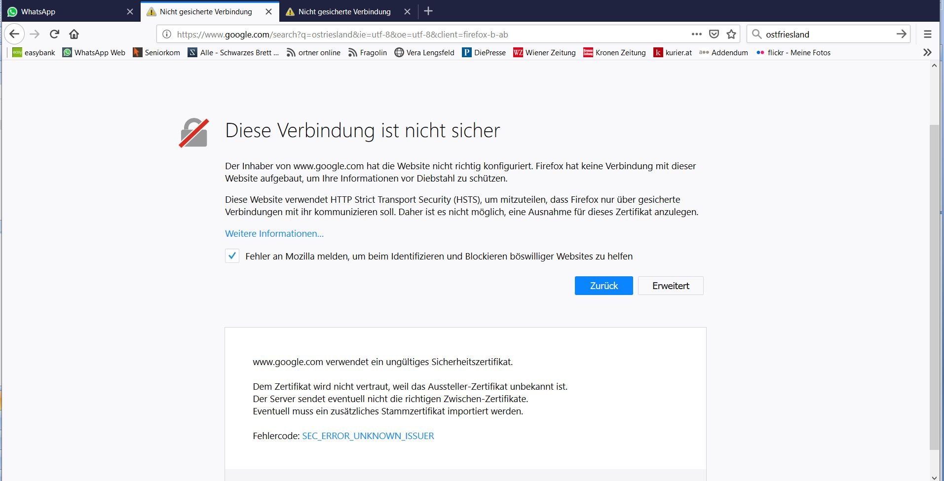 Sicherheitswarnungen noch und nöcher