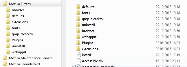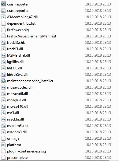 Außerdem sind bei mir diverse Dateien vorhanden, die bei Gretha zu fehlen scheinen (z. B. "xul.dll").Letztlich ist die Empfehlung jedoch die gleiche:
