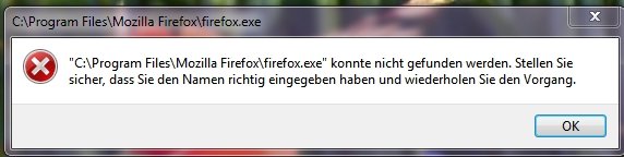 ich startete Firefox bisher im Startmenue. Jetzt lässt sich Firefox nicht starten, es wird immer angezeigt, die Verknüpfung fehlt, die Exe ist nirgends mehr zu finden