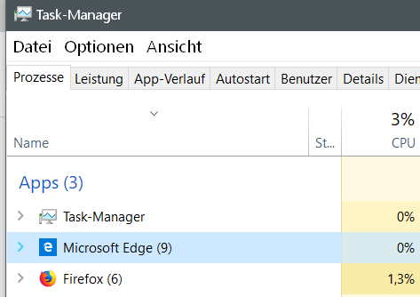 Mir ist aufgefallen das mein Lappi nach dem Neuaufsetzen von Win10 und einer Datenwiederherstellung meines FF mehr Tabs im Taskmanager anzeigt.
