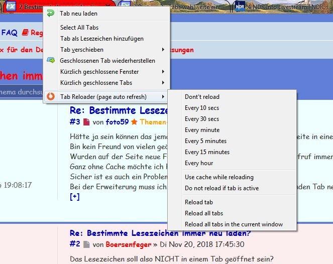 Was ich bei Tab Reloder supoptimal finde, ist dass ich die Auto-Reload-Funktion für jeden Tab neu einstellen muss. Deshalb hat es Tab Relaoder bei mir nicht in die Addonliste geschafft.