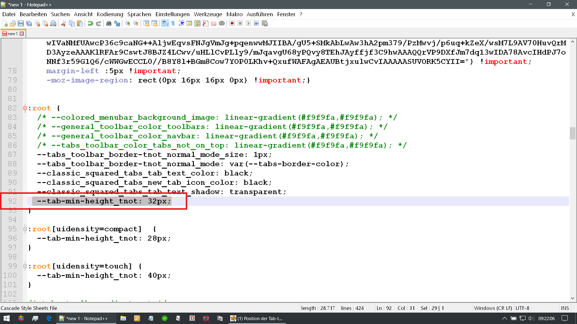 War nur ein wenig verwundert, aus welchen Grund bei dir eine !important Deklarierung notwendig ist für eine sichtbare Änderung, wenn die Variabel nur einmal im Code vorhanden ist. (ist ja keine von Firefox genutzte Variabel, welcher deren Wert überschrieben werden müsste)