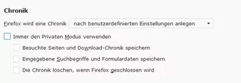 Firefox wird eine Chronik "nach benutzerdefinierten Einstellung anlegen"