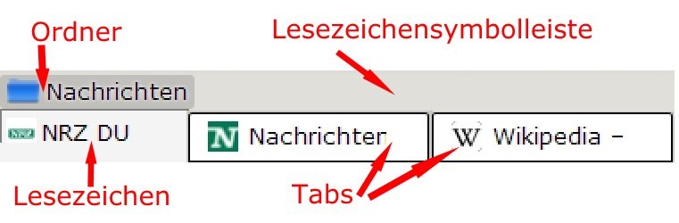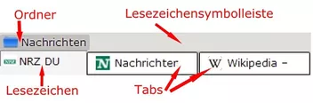 Oben mit dem W ist das Lesezeichen, unten ist der dazugehörige Tab.