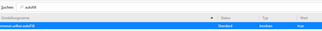 nach vielen Jahren einwandfreier Funktion, bleibt plötzlich die Funktion "browser.urlbar.autoFill" unter about:config nicht mehr gespeichert.