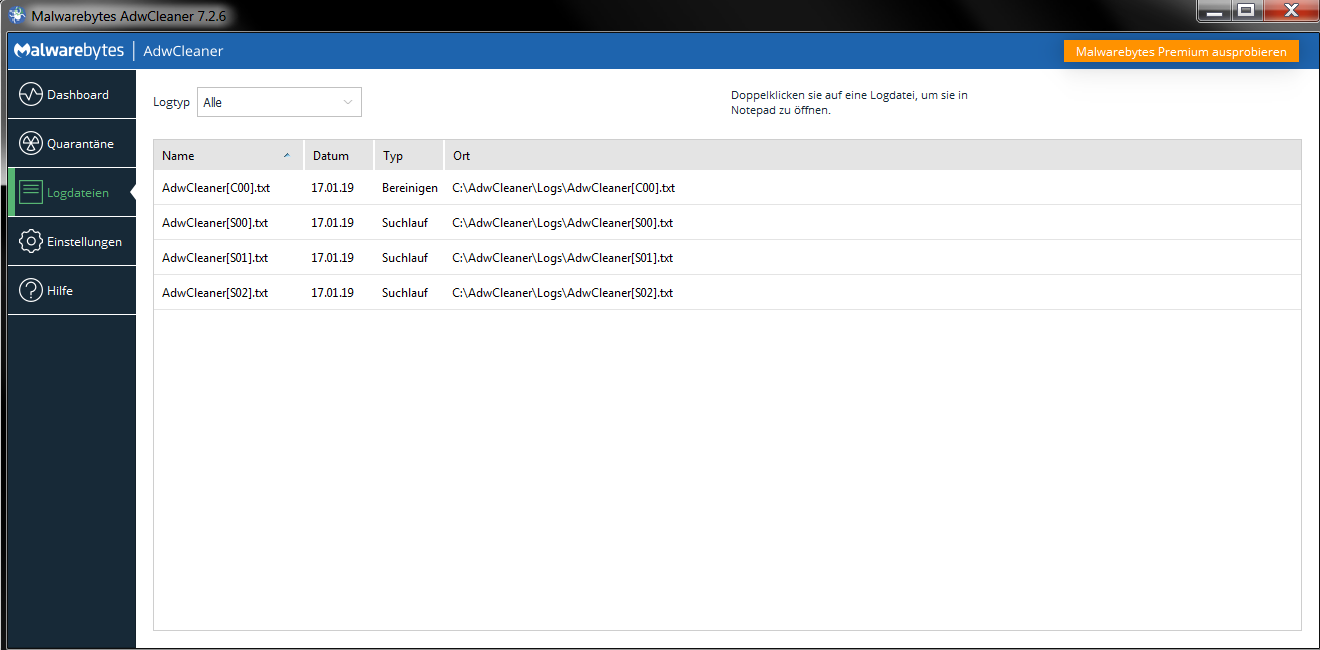 • Der Screenshot von AdwCleaner bringt gar nix. Bitte auf den Log klicken und den Inhalt hier in Klammer Code einfügen!