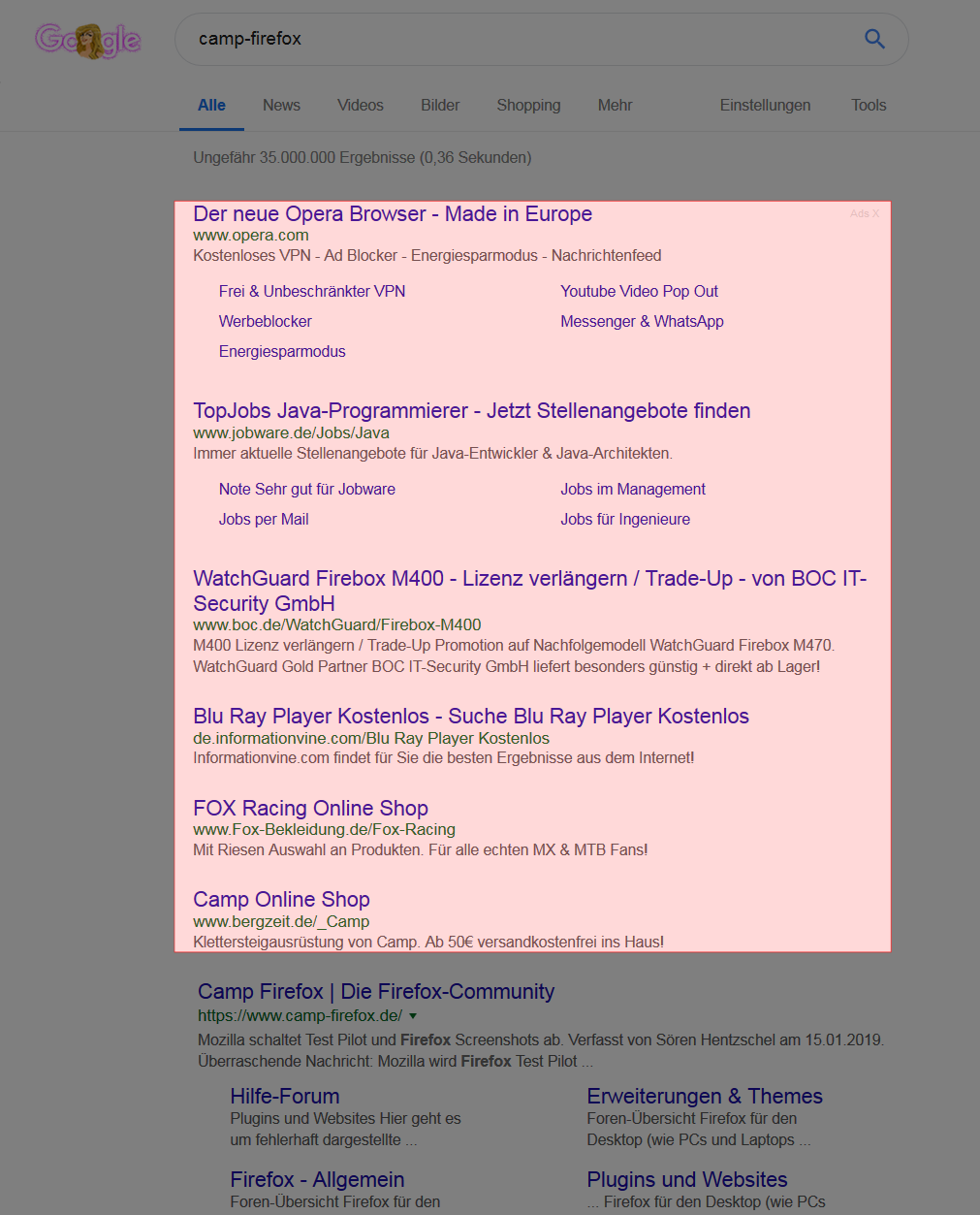 • Das ist aber schon seltsam, was du da an Suchergebnissen bekommst. Selbst mit einem frischem Profil ohne irgendwelchen Adblockern bekomme ich nicht diese Suchergebnisse sondern es sieht wesentlich sauberer aus.